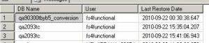 select Destination_database_name AS [DB Name],user_name AS [User] ,restore_date As [Last Restore Date]